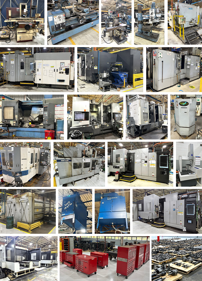 Okuma, Toyoda, and Mori Seiki CNC Horizontal Machining Centers, Okuma Twin-Spindle CNC Vertical Lathes, Machine Tools, Parts Washers, Mist Collectors & 1000's of CAT 50 Tool Holders